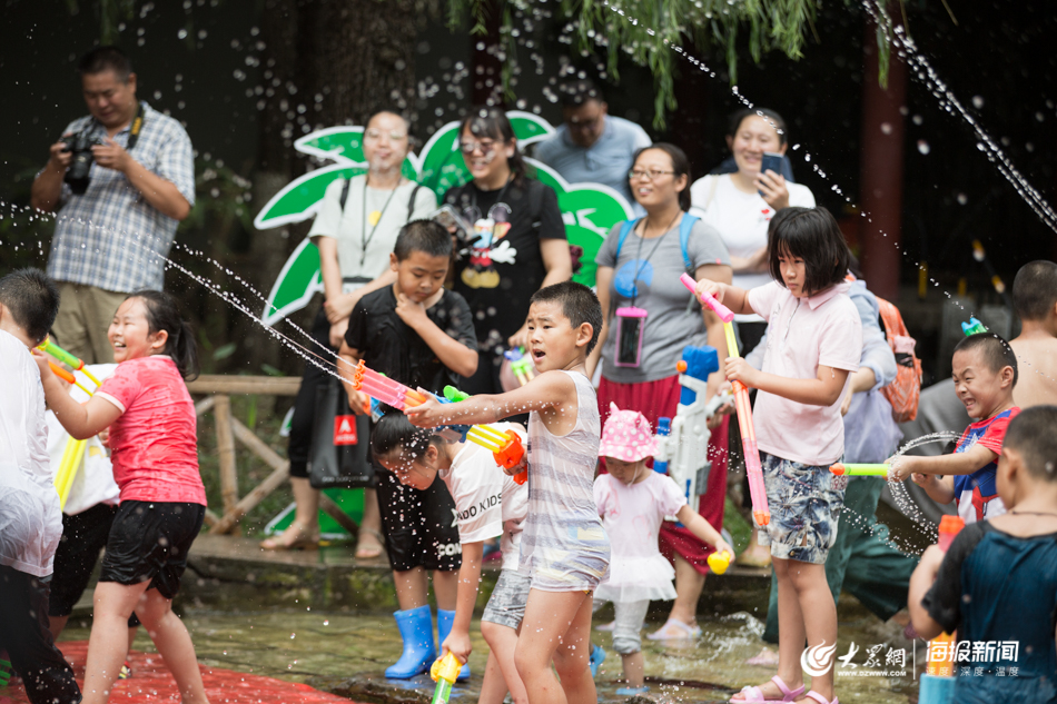 大眾網(wǎng)·海報新聞濟(jì)南8月24日訊(記者 畢勝 孫博洋)水槍,水桶,水盆齊上陣,想不濕身都難!