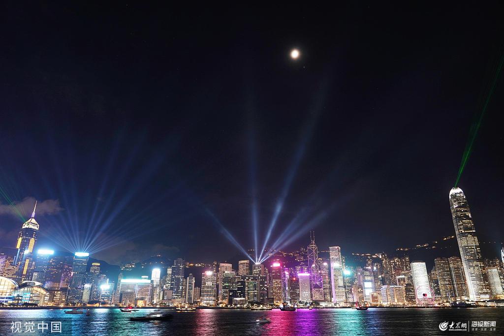 2019年9月6日晚,難得一見的“木星合月”天象出現(xiàn)在香港維多利亞港的西南方天空,與正在上演的“幻彩詠香江”燈光秀構(gòu)成難得一見的景觀。