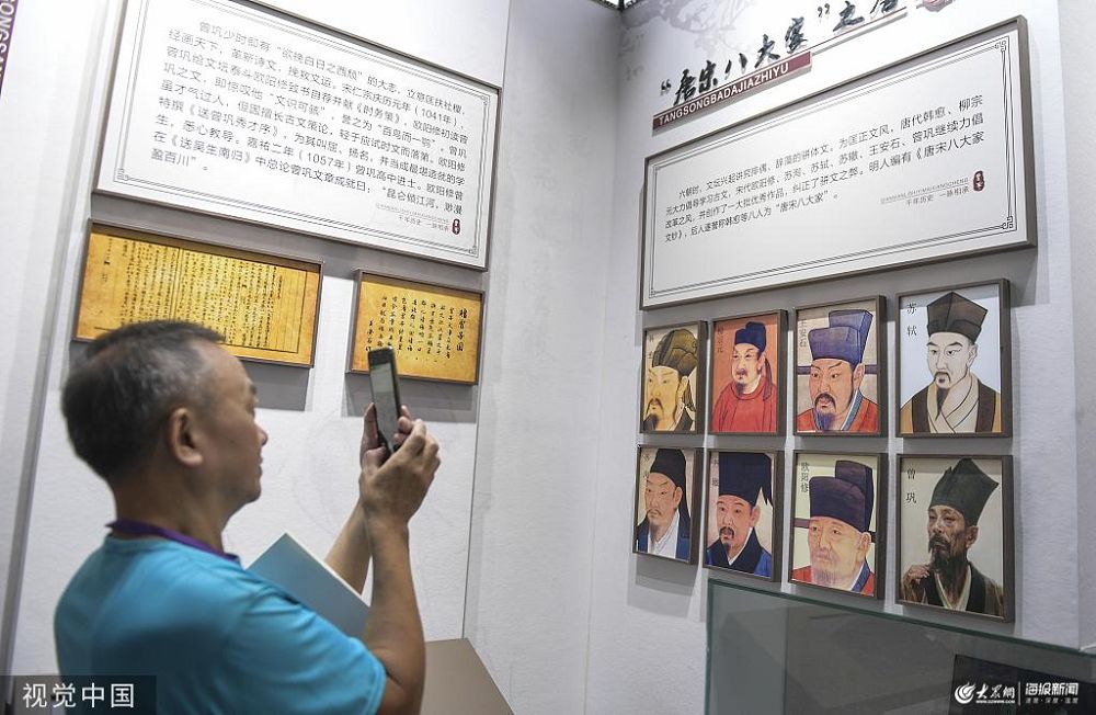 2019年9月10日,濟(jì)南曾鞏展覽館正式開館迎客。據(jù)悉,北宋著名文學(xué)家、史學(xué)家,“唐宋八大家”之一的曾鞏,曾于公元1071年至1073年,任齊州(今山東濟(jì)南)知州。圖為游客在“曾鞏展覽館”內(nèi)參觀。 張勇(山東分社)/中新社/視覺中國