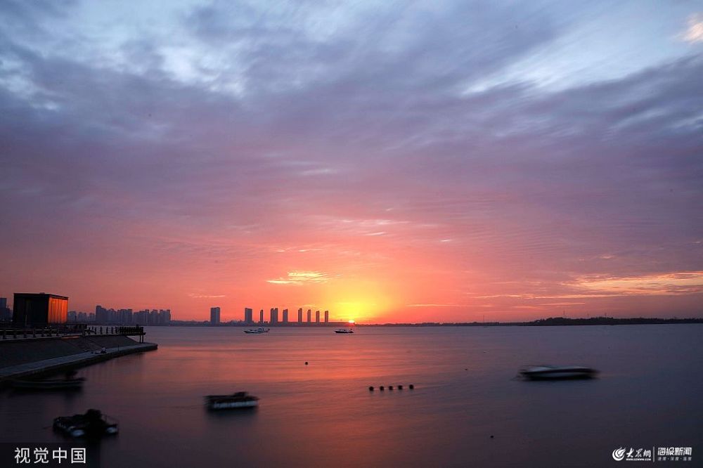 2019年9月17日,青島西海岸新區(qū)唐島灣海濱清晨風(fēng)光絢麗繽紛,朝霞將新區(qū)人的“母親灣”裝點(diǎn)得美麗多彩。