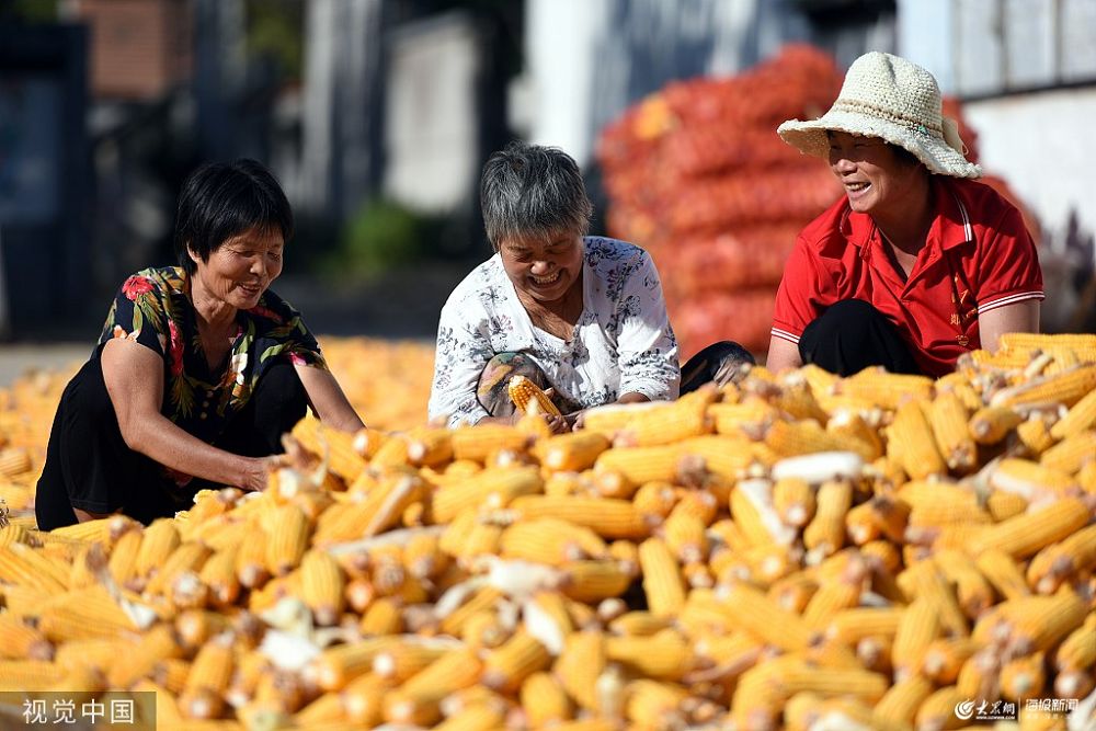 2019年9月18日,山東臨沂,金秋時節(jié),被譽為“魯南糧倉”的郯城縣春玉米喜獲豐收,農民利用晴好天氣抓緊搶收晾曬。