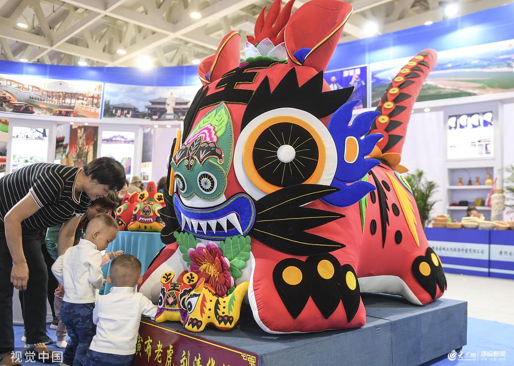 2019年9月20日,參觀者欣賞山東濱州非物質(zhì)文化遺產(chǎn)“布老虎”。當(dāng)日,在濟(jì)南舉辦的第八屆山東國際文化產(chǎn)業(yè)博覽交易會(huì)上,50余個(gè)國家和地區(qū)的參展商攜文化精品亮相。