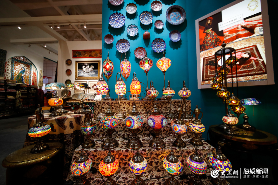 大眾網·海報新聞濟南9月21日訊(記者畢勝 張珈瑋)在第八屆山東文博會現場,B1“一帶一路“展區(qū)人頭攢動,不少游客在這個展區(qū)流連忘返,51個國家的365家國際展商,代表本土特色的產品玲瑯滿目地擺放在各個風格迥異的展館內,使人目不暇接。據悉,本屆文博會的參展國家數量、國際化程度堪稱“歷屆之最”。 第八屆山東文博會伊朗展區(qū)的精美臺燈。