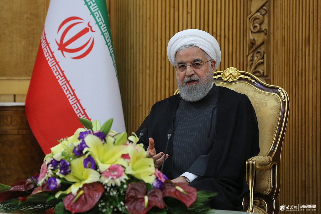 當(dāng)?shù)貢r(shí)間2019年9月27日,伊朗德黑蘭,伊朗總統(tǒng)魯哈尼參加完第74屆聯(lián)大會(huì)議后返回到梅赫拉巴德國(guó)際機(jī)場(chǎng),并在機(jī)場(chǎng)舉行新聞發(fā)布會(huì)。