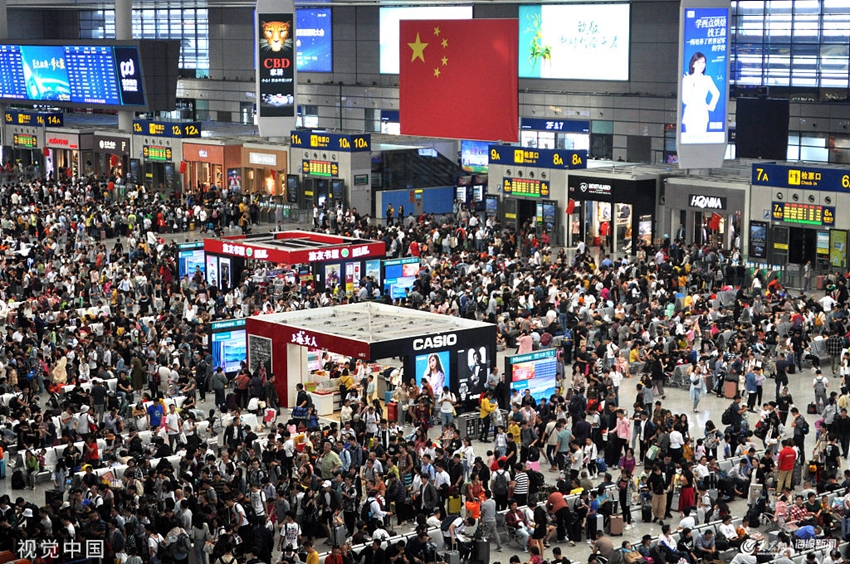 2019年10月6日,國(guó)慶長(zhǎng)假進(jìn)入倒計(jì)時(shí),上海虹橋火車站迎來返程大客流。