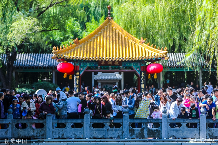 2019年10月5日,濟(jì)南趵突泉景區(qū)迎來(lái)客流高峰,泉畔擠滿游客,三股水被眾人重重包圍,游客在此想拍照留影,稍不留神就變成“集體大合照”。