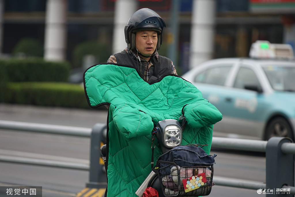 2019年10月7日,國(guó)慶假期最后一天,在經(jīng)歷一夜的降水后,濟(jì)南氣溫驟降到9度。在濟(jì)南濼源大街街頭,不少市民都選擇羽絨服、沖鋒衣等冬裝出行,將自己裹得嚴(yán)嚴(yán)實(shí)實(shí)。