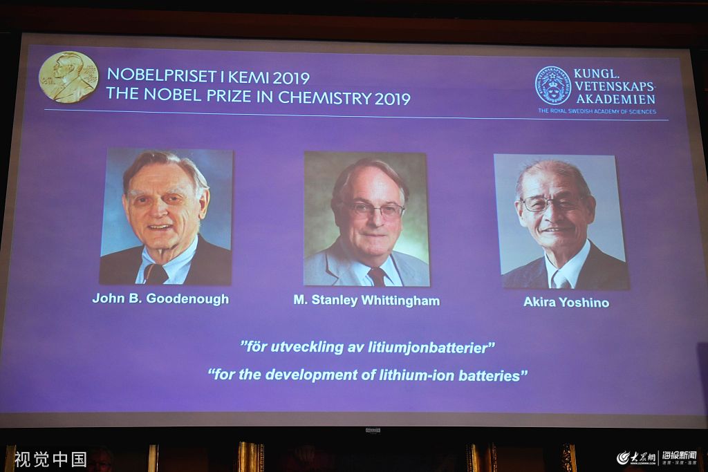 當(dāng)?shù)貢r間2019年10月9日,瑞典斯德哥爾摩,瑞典皇家科學(xué)院宣布,將2019年諾貝爾化學(xué)獎授予約翰·B·古迪納夫(John B. Goodenough)、M·斯坦利·威廷漢(M. Stanley Whittingham )、吉野彰(Akira Yoshino)。