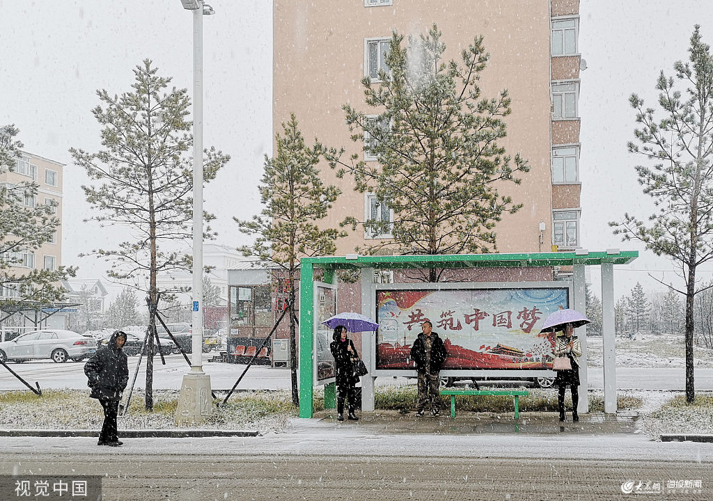 2019年10月9日,在黑龍江省漠河市,市民冒雪出行。