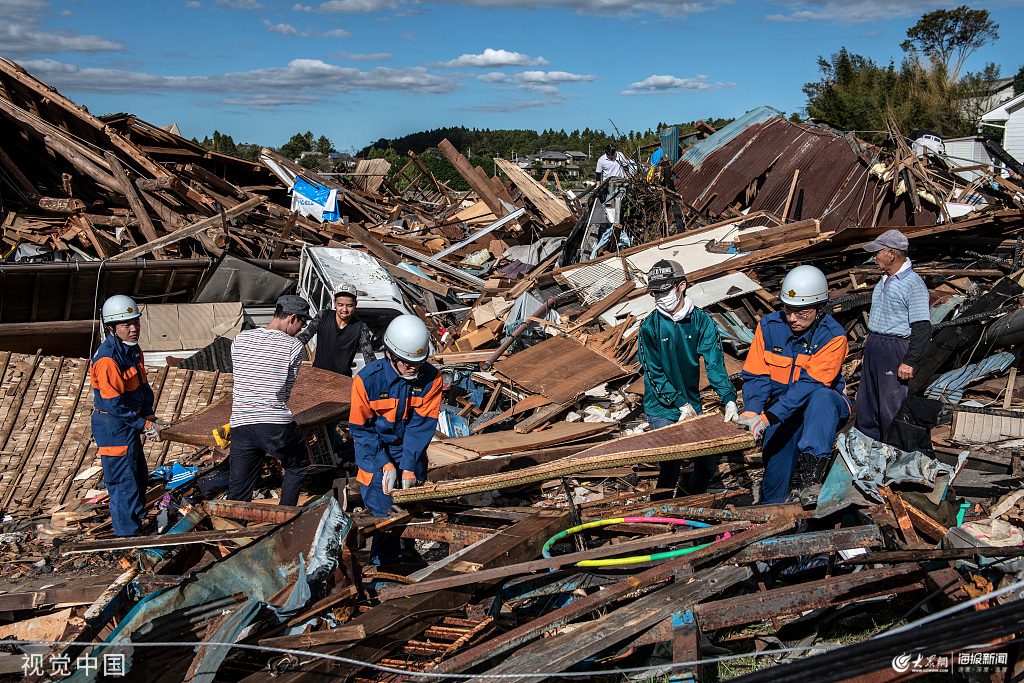 當?shù)貢r間2019年10月13日,日本千葉,第19號臺風“海貝思”來臨不久前,當?shù)卦恺埦盹L襲擊,不少建筑物被摧毀。第19號臺風“海貝思”過境日本,已導致死亡人數(shù)升至21人,另有16人下落不明,166人受傷。