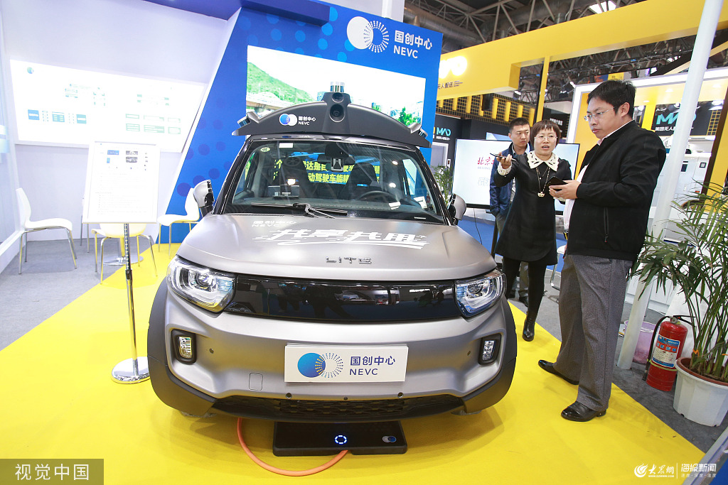 2019年10月23日,北京,參觀者觀看國(guó)創(chuàng)中心展出的無(wú)人駕駛汽車。