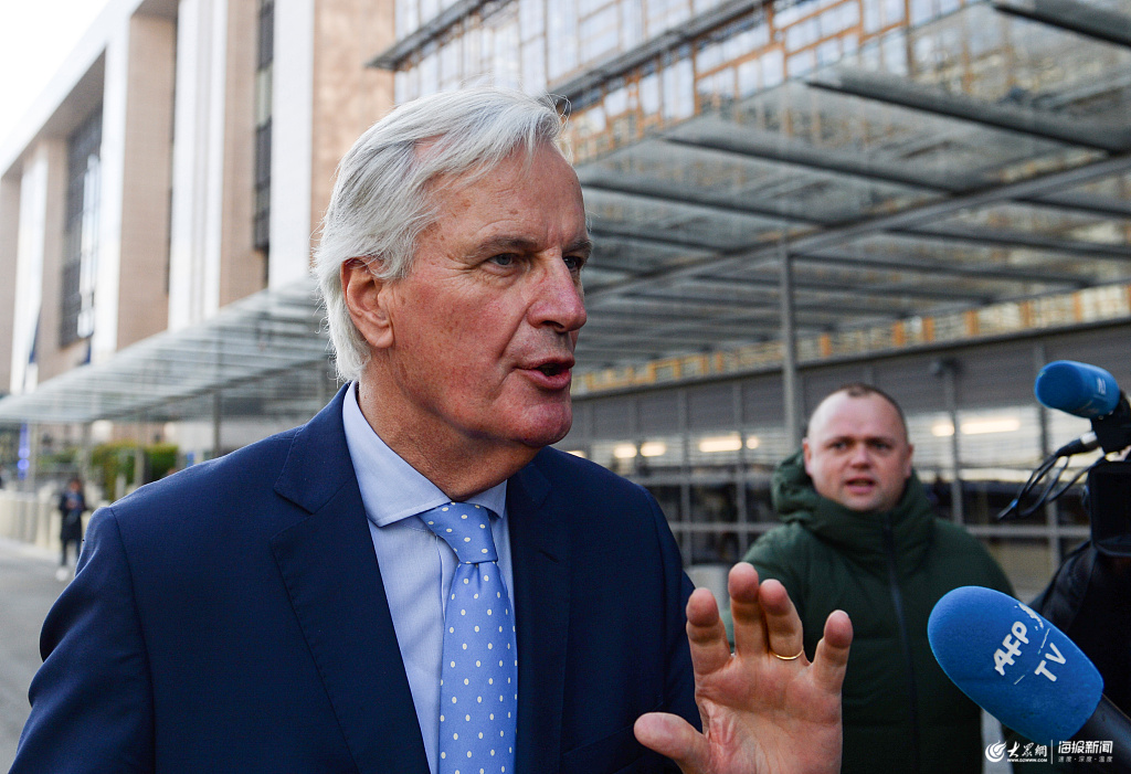 當(dāng)?shù)貢r間2019年10月25日,比利時布魯塞爾,歐盟首席脫歐談判代表米歇爾·巴尼耶與歐盟27國大使會面后離開歐盟委員會總部時接受采訪。