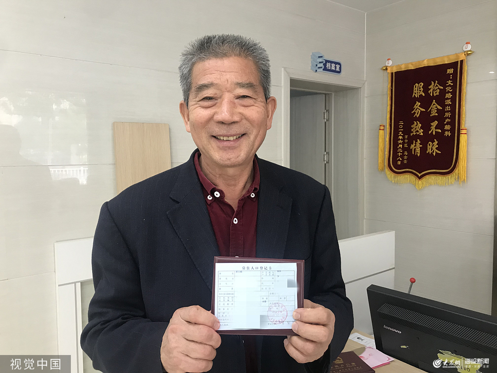 2019年11月1日,山東棗莊,黃維平的妻子已經(jīng)67歲,因?yàn)楦啐g產(chǎn)子而成為全國關(guān)注的焦點(diǎn)。圖為老人黃維平到派出所給女兒辦戶口。