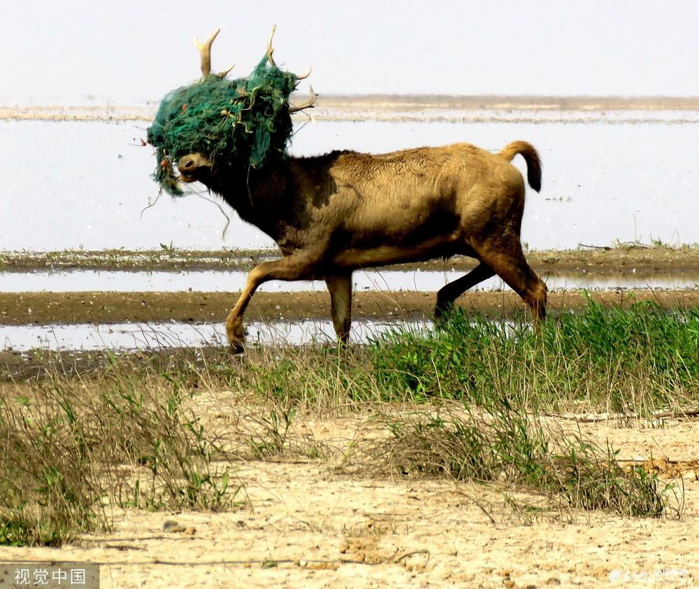 2019年11月9日,江西九江市都昌縣鄱陽(yáng)湖濕地發(fā)現(xiàn)一頭雄性麋鹿活動(dòng)異常,它整個(gè)頭部被捕蝦網(wǎng)套住,如果不及時(shí)清除麋鹿頭上的網(wǎng),此鹿極有可能無(wú)法生存。