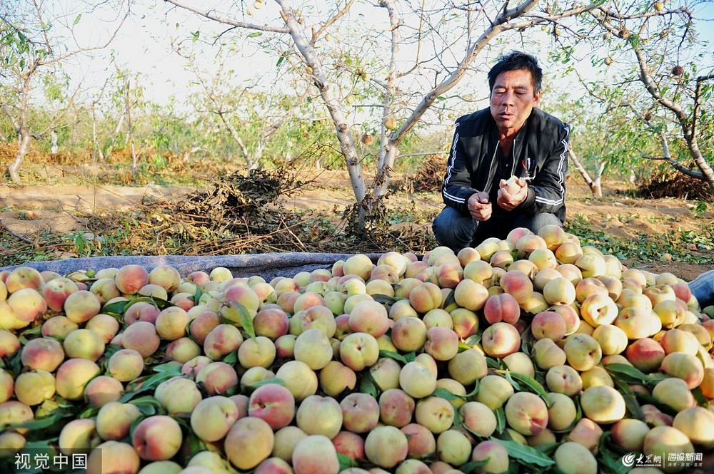 2019年11月14日,青島膠州市洋河鎮(zhèn)董城村,年近5旬的薛紀(jì)德蹲在自己的果園里成堆采摘下來(lái)的迎霜桃前,向記者介紹賣(mài)桃難。據(jù)了解,薛紀(jì)德承包了20多畝果園,以前一邊養(yǎng)豬一邊種植水果,后來(lái)養(yǎng)豬不掙錢(qián),就放棄了養(yǎng)豬一心一意種植新引進(jìn)的迎霜桃?墒墙衲晏O(píng)果豐收后價(jià)格走低,導(dǎo)致自己種植的香甜可口的迎霜桃也出現(xiàn)銷(xiāo)售難題。眼看“小雪”季節(jié)即將來(lái)臨,還有上萬(wàn)斤的鮮桃滯留桃園,如果還銷(xiāo)售不出去一年的辛勞將付之東流。