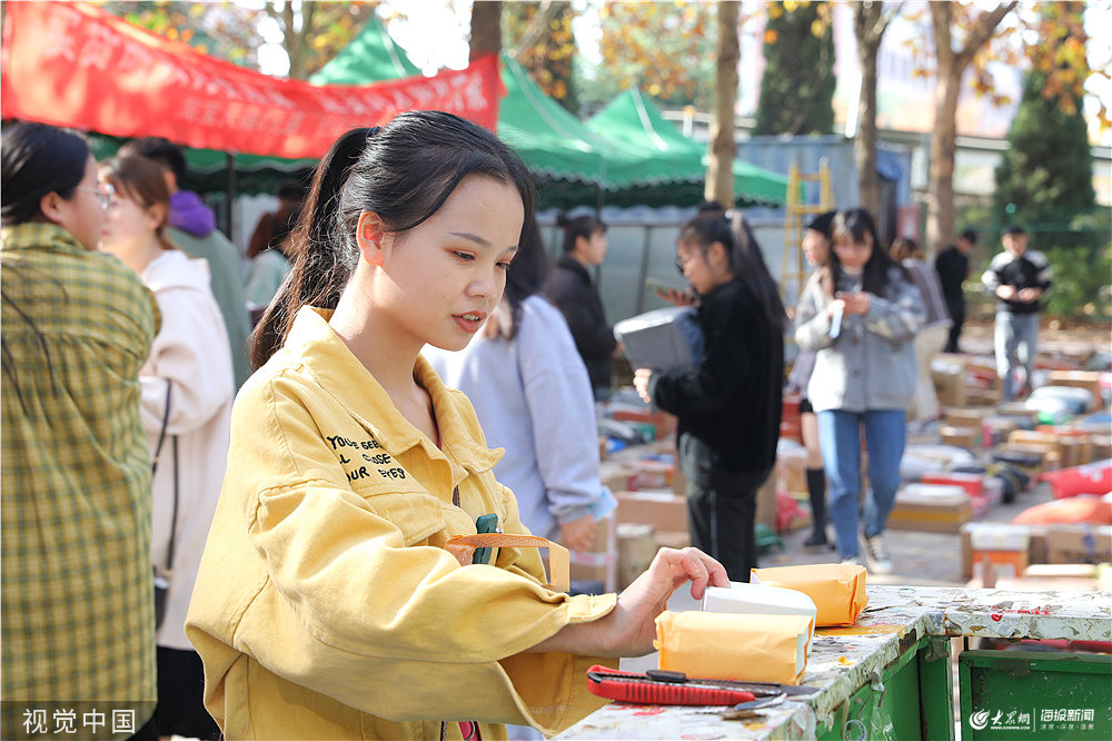 2019年11月15日,濟(jì)南,雙十一”網(wǎng)絡(luò)銷售大戰(zhàn)已過(guò)去幾天了,隨著各地快遞配送高峰的到來(lái),高校則成為另一個(gè)“戰(zhàn)場(chǎng)”,濟(jì)南某高?爝f服務(wù)點(diǎn)出現(xiàn)“爆倉(cāng)”景象,包裹“堆積如山”,領(lǐng)快遞的學(xué)生排起長(zhǎng)隊(duì)。
