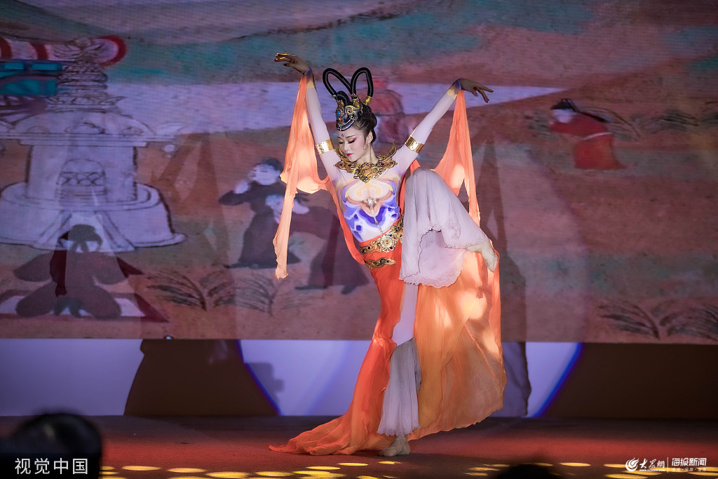 北京,中國(guó)歌劇舞劇院王家鑫表演舞蹈《遇見(jiàn)飛天》。
