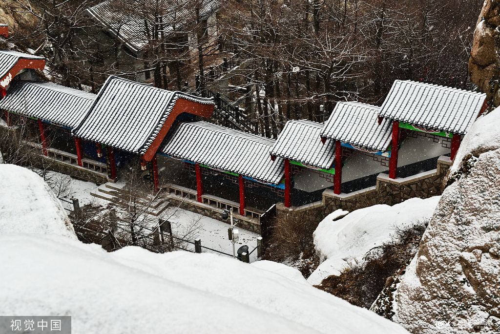 2019年11月30日,青島嶗山巨峰迎來了2019年第一場冬雪。洋洋灑灑間,玉樹瓊枝、粉雕玉琢,于錯(cuò)落有致的雪色群山中。
