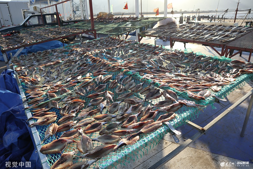 2019年12月2日,青島嶗山區(qū)港東漁碼頭晾曬的各種海魚。寒冬時節(jié)海風(fēng)勁吹,港東碼頭漁民將捕獲的面包魚、鲅魚、偏口魚等琳瑯滿目的海魚經(jīng)海水清洗去除內(nèi)臟集中晾曬,場面壯觀。曬魚是膠東漁民數(shù)百年的傳統(tǒng),不要佐料只需自然天曬便成美味,成為當(dāng)?shù)匾坏廓?dú)特的風(fēng)景,也為漁民帶來豐厚收入。