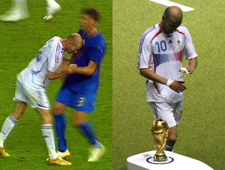 在齊達(dá)內(nèi)離開球場的時候,他正好從大力神杯旁邊經(jīng)過,他落寞的身影與金光閃閃的獎杯形成強(qiáng)烈的反差。當(dāng)他走到場邊的時候瞄了大力神杯一眼,從他的眼神中可以看出齊達(dá)內(nèi)渴望能夠捧得獎杯。當(dāng)舉行頒獎儀式的時候,齊達(dá)內(nèi)并沒有出現(xiàn)在人們的視野當(dāng)中,也許他在休息室中正在為自己的不冷靜行為懊悔不已,可以說是他將大力神杯拱手送給了意大利人,也許本場比賽將是齊達(dá)內(nèi)心中永遠(yuǎn)的痛。