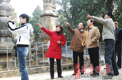 。玻谷丈衔纾瑤孜幻襟w老總來(lái)到了長(zhǎng)清的靈巖寺景區(qū)。在著名的千佛殿,看著那一座座神態(tài)各異、栩栩如生的彩色泥塑,各位媒體老總連說(shuō)不愧為“海內(nèi)第一名塑”。在寺內(nèi)的辟支塔前,大家紛紛合影留念。而由靈巖寺歷代住持高僧的墓塔、墓碑組成的墓塔林,也引起了媒體老總們的濃厚興趣。導(dǎo)游講解說(shuō),所謂“晨鐘暮鼓”,鐘形的塔表明這位高僧是早晨圓寂的,鼓形的塔表明是晚上圓寂的,大家聽(tīng)后恍然大悟。